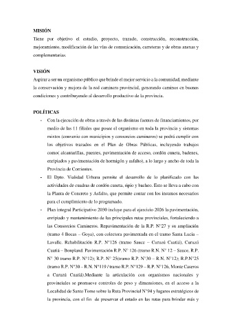 la conservación y mejora de la red caminera provincial, generando caminos en buenas