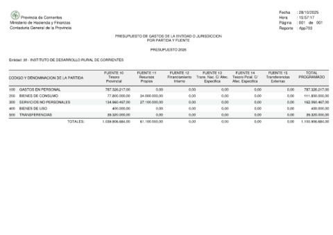 Entidad: 30 - INSTITUTO DE DESARROLLO RURAL DE CORRIENTES