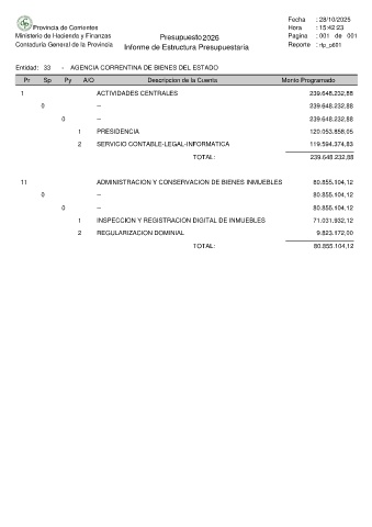 Entidad: 33 - AGENCIA CORRENTINA DE BIENES DEL ESTADO