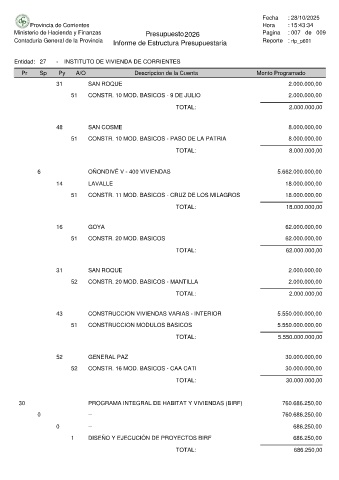 Entidad: 27 - INSTITUTO DE VIVIENDA DE CORRIENTES