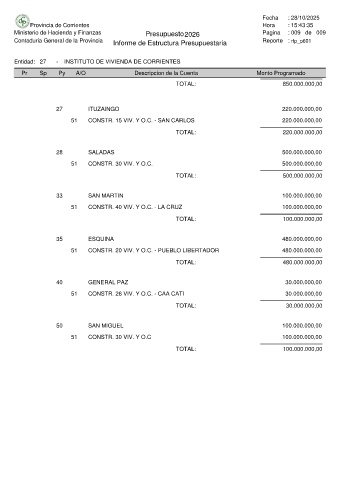 Entidad: 27 - INSTITUTO DE VIVIENDA DE CORRIENTES