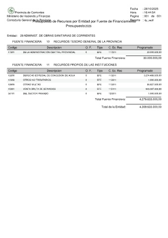 Entidad: 29 ADMINIST. DE OBRAS SANITARIAS DE CORRIENTES