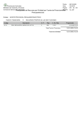 Total de la Entidad: 13.512.965.013,00