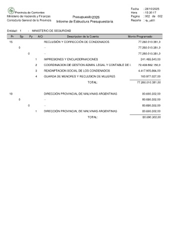 Ministerio de Hacienda y Finanzas Presupuesto 2026 Pagina : 002 de 002