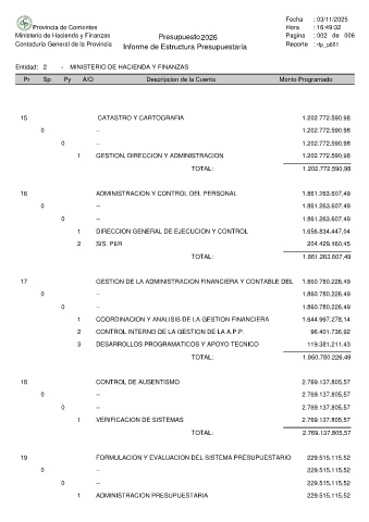 Ministerio de Hacienda y Finanzas Presupuesto 2026 Pagina : 002 de 006