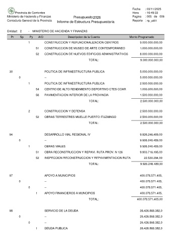 Ministerio de Hacienda y Finanzas Presupuesto 2026 Pagina : 005 de 006
